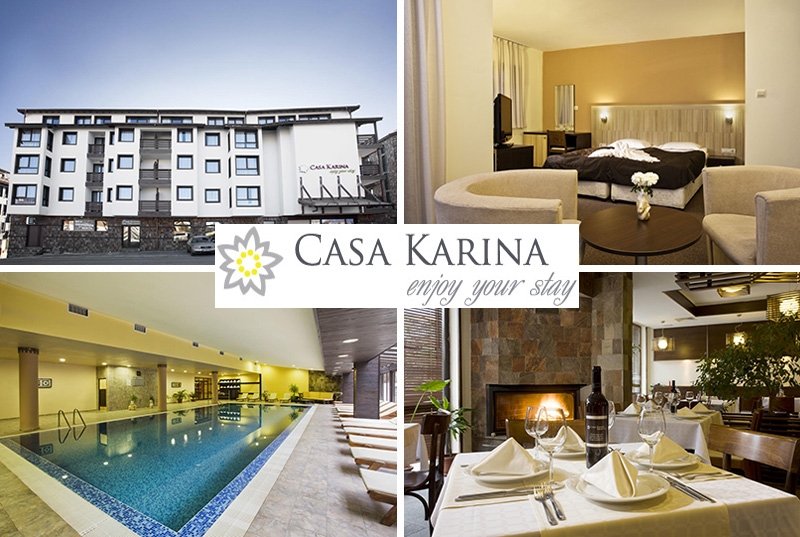 Поаѓање за Банско во 06.00 часот од Скопје, пред хотел Континентал, во 06.45 часот од Куманово, пред бензинска пумпа Макпетрол, во  07.30 часот од Штип, паркингот пред Новата Пошта, 08.00 часот од Кочани. Дневно патување со попатни паузи за одмор и царински формалности. Пристигнување во Банско во пладневните часови. Сместување во хотел Casa Karina 4*. Слободно време за уживање во СПА центарот или индивидуална прошетка низ градот. Вечера. Ноќевање.