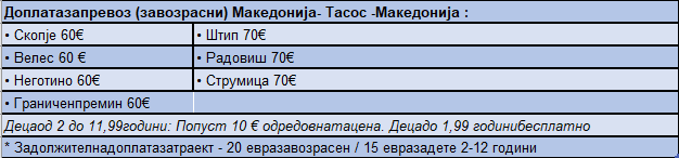 * Доплата за корситење на клима уред се плаќа на лице место 7€