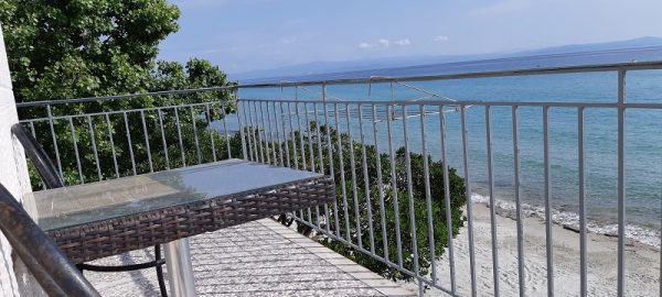 Студиото се наоѓа на прв кат и излегува на тераса на која има маса со столици. Студиото е со поглед на море. На плажата имате лежалки и чадор кои се користат со нарачка на пијалок.