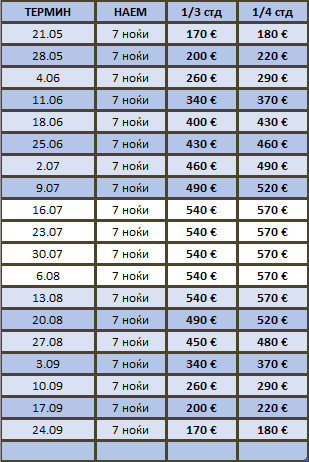 ЦЕНИТЕ во табелата се за наем на студио / 7 ноќевања