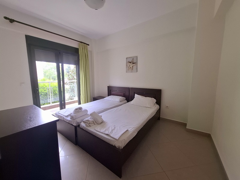 бр.Z2 & Z1 – двоспален апартман на приземје, составен од две спални соби и дневен простор со софа на спуштање, една спална со двоен кревет, втора спална со два единечни кревети, максимум сместување 4 возрасни + 2 деца до 11,99год, нема ограден балкон, седењето е поставено пред самиот апартман.
