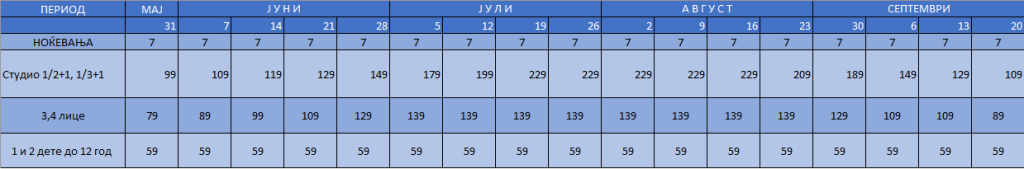 *туристичка такса 0,5€ од ноќ се плаќа во агенција