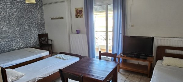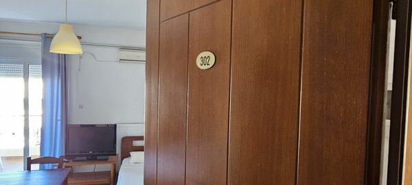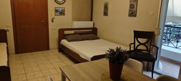 Студиото располага со еден дупол кревет,еден поединечен кревет.Во сколопот на собата е кујната која е комплетно опремена со кујнски инвентар.Има електрично решо,аспиратор и г. фрижидер.Излегува на комотна тераса со маса и столици.Студиото има клима уред,тв и стандардно купатило со вц.