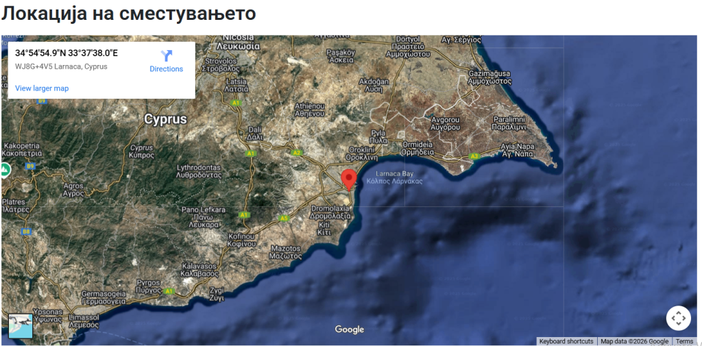 - Организирани трансфери: аеродром Ларнака – хотел – аеродром Ларнака