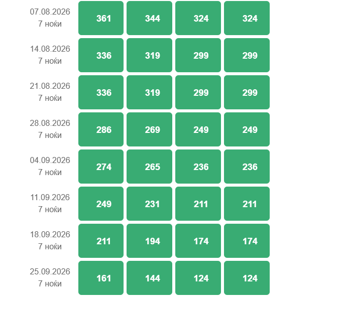 1. Термините во табелата се денови на започнување на аранжманот.