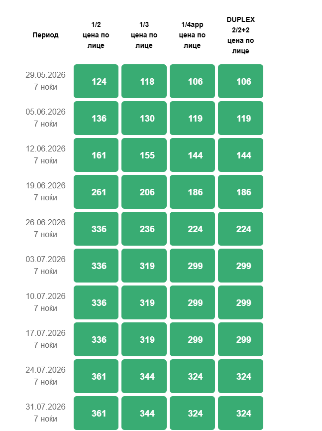 – Дете од 0 до 3,99 години -Бесплатно (спие во кревет со еден од возраснитеп)
