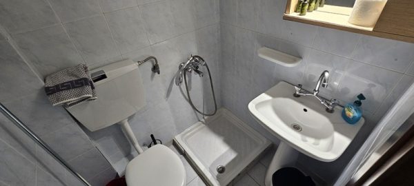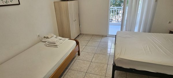 Студиото се наоѓа на прв кат.Има еден дупол кревет комотен за спиење на 2 лица и еден поединечен кревет кој се додава до дуплиот кревет наменет за дете или возрасен.Од спротива има еден стандарден поединечен кревет за 1 лице.Има плакар за алишта .Кујната е одвоена со ѕид, опремена со аспиратор, плотна со две рингли,мал фрижидер со комора и комлетен кујнски инвентар.Има маса за ручавање, ТВ и клима уред.Има сопствено купатило и ВЦ. Студиото излегува на тераса со маса и столици.